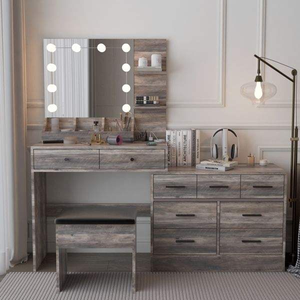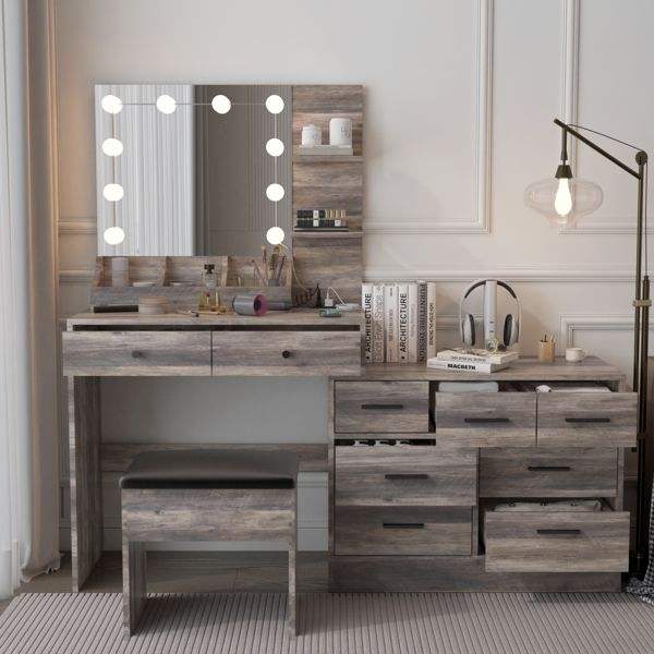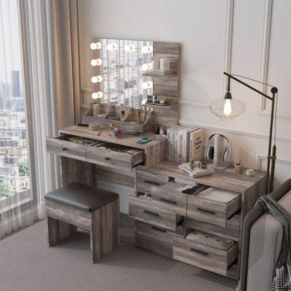 Large LED Light Vanity Desk with 10 Bulbs Makeup Table with Charging Station Elegant Vanity Mirror