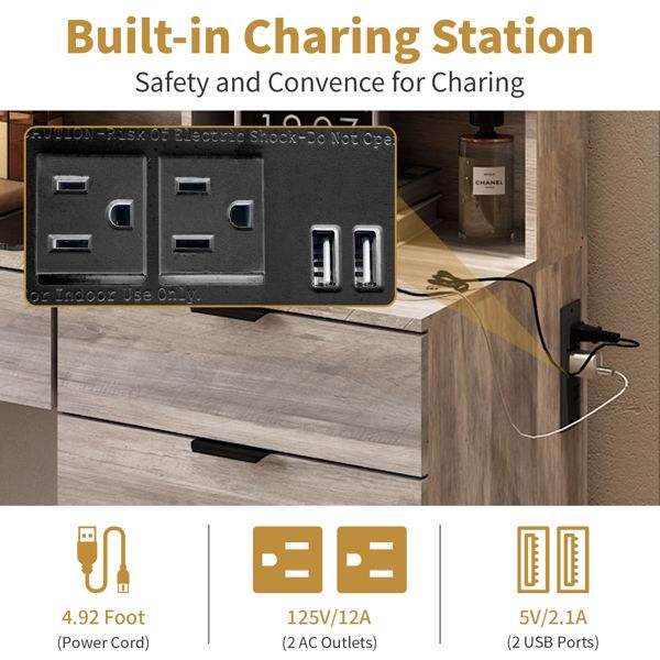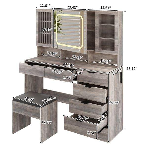 Large LED Lighted Mirror Makeup Vanity Table Set with Charging Station Glass Doors Drawers-for Your Daily Beauty Routine!