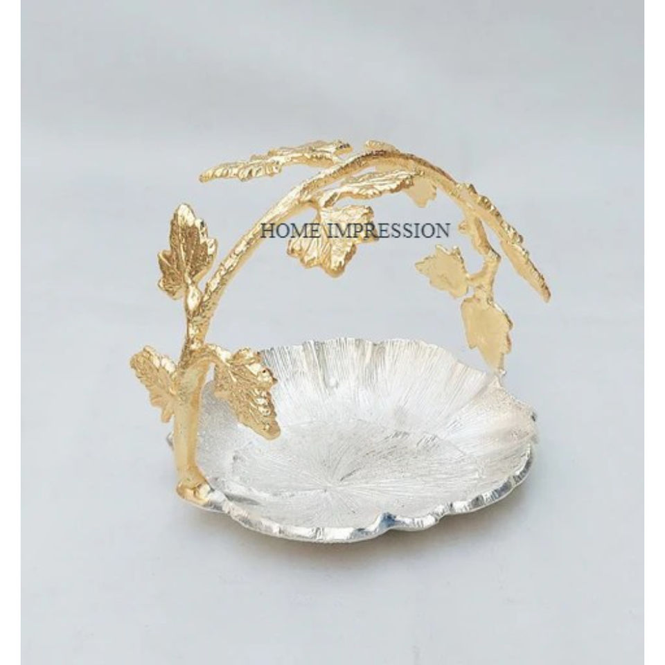 Stylish Large Leaf Designer Metal White Gold Color Antique Table Bowl Best Selling Decorative Wedding Party Food Serving Bowl