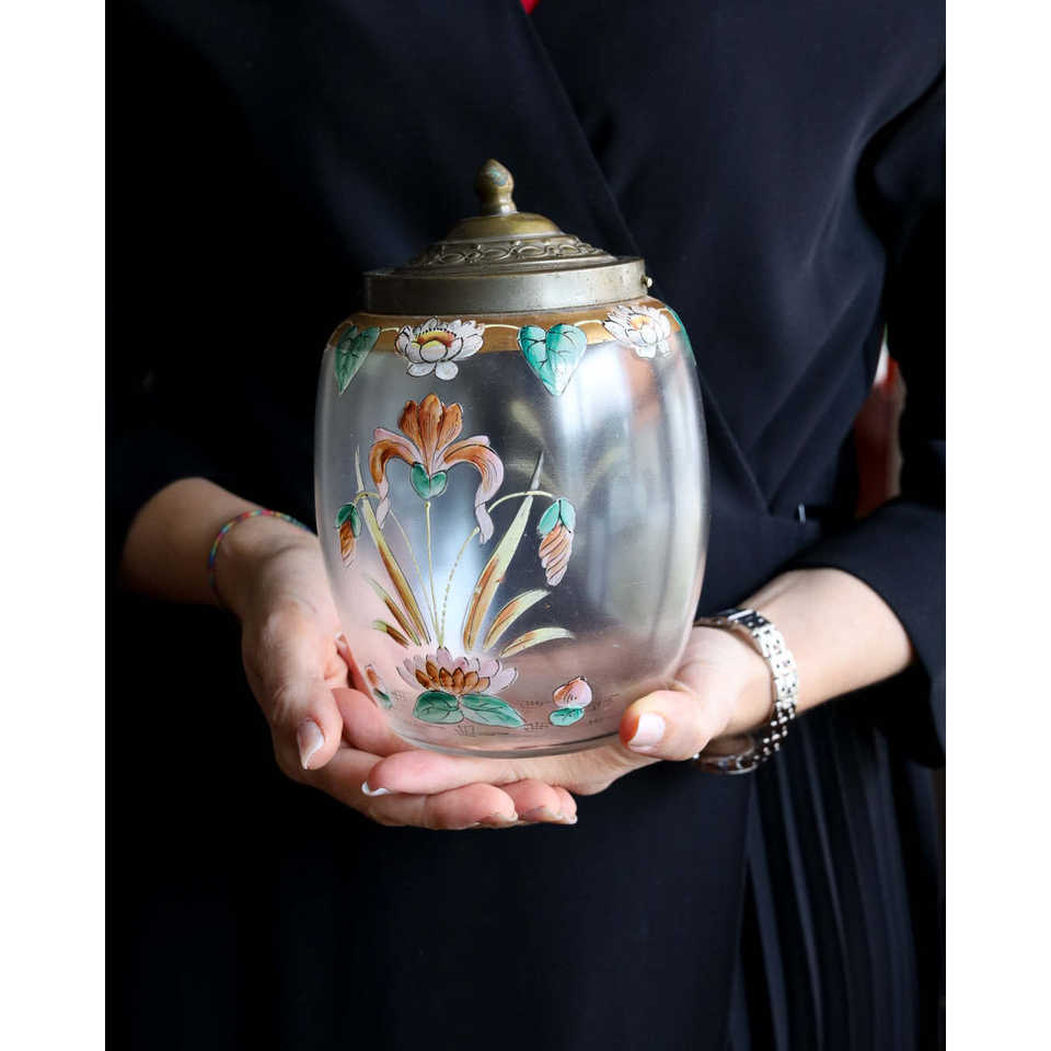 Large Luxury Hand-Painted Cylinder Glass Vase Crystal Material with Irises Design for Flowers