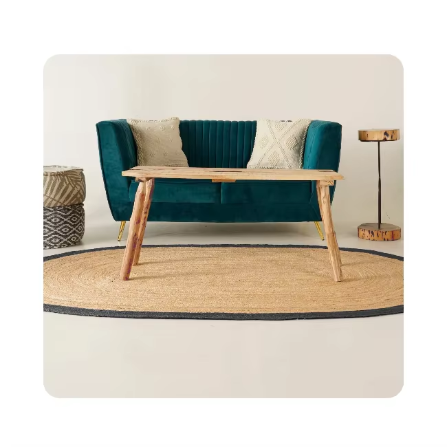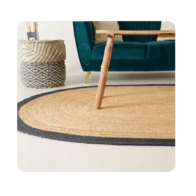 Large Luxury Seagrass Woven Rug Hand Braided Beige with Grey Border Modern Style Oval Jute Rugs & Sets for Teenagers