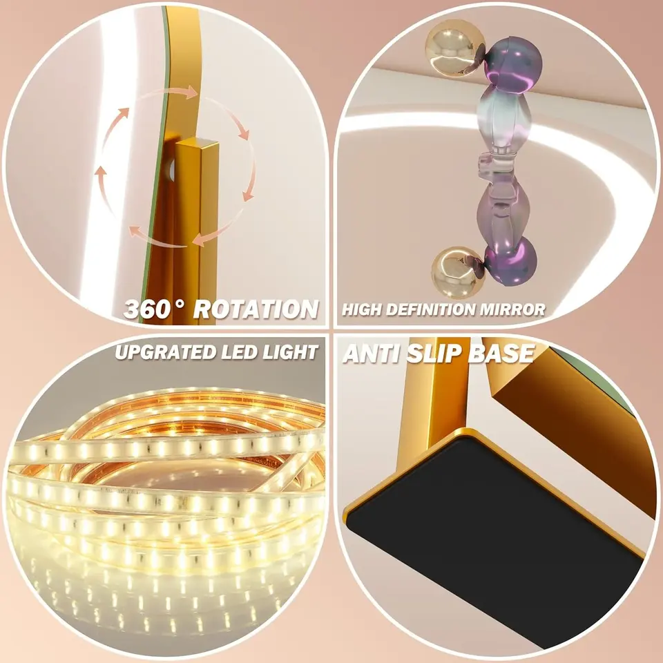 Large Makeup Mirror with Light Tabletop Desk Dresser Adjustable Rotation Make up Standing Vanity Makeup Table Mirror