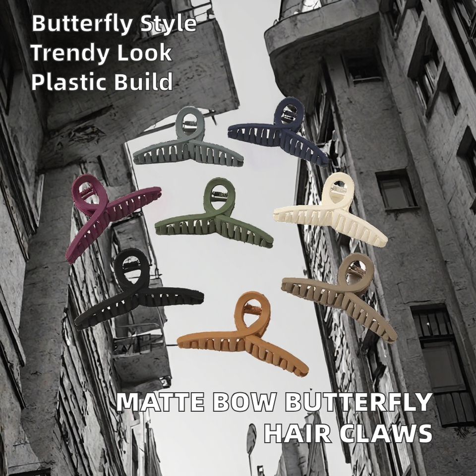 Large Matte Spray Paint Bow Hair Claw Clips for Women New Maillard Style Elegant Plastic Butterfly Hair Claws