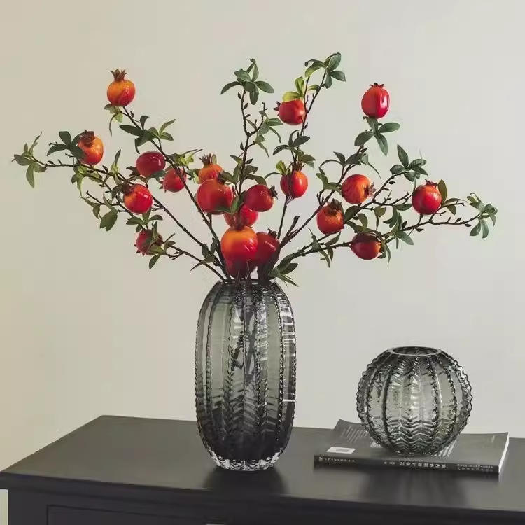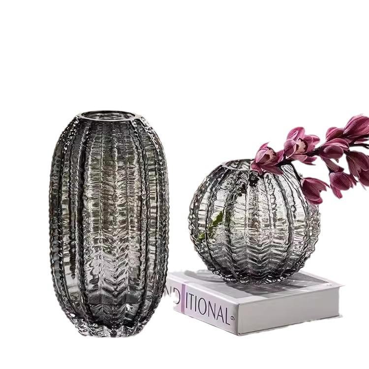 Large Modern Cactus Glass Vase for Living Room Coffee Table Dining Table Elegant Lily Flower Arrangement Small Mouth Utensil