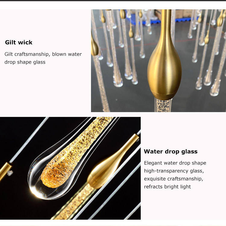 Large Modern Creative Water Drop Pendant Lights Metal/Crystal/Glass for Restaurant Island Bar Bedroom Hotel Use (2-Year
