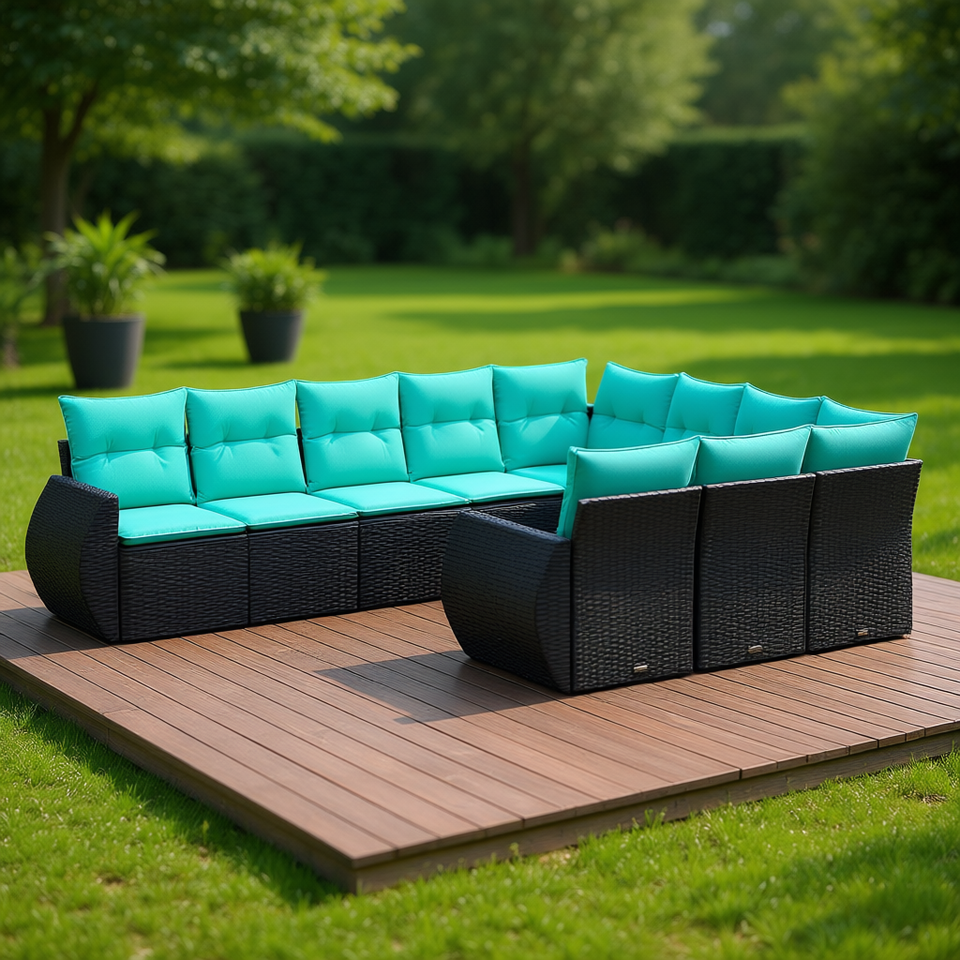 Modular Black PE Rattan Patio Sofa Set Outdoor Garden Furniture Contemporary Design High-Density Foam Cushions