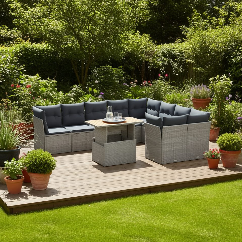 Modular Grey PE Rattan Garden Sofa Set 6 Seater Outdoor Furniture Contemporary Design