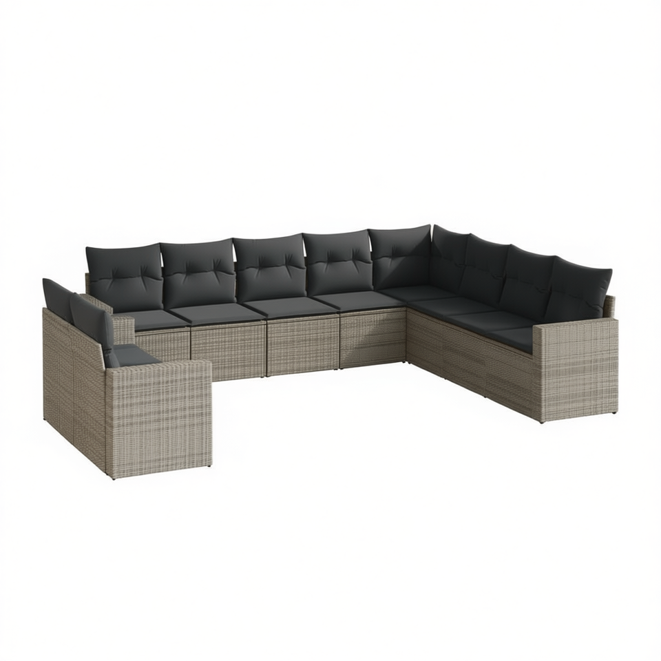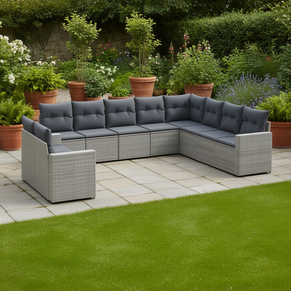 Modular Grey PE Rattan Garden Sofa Set Steel Frame Outdoor Furniture 10+ Seating Contemporary Design