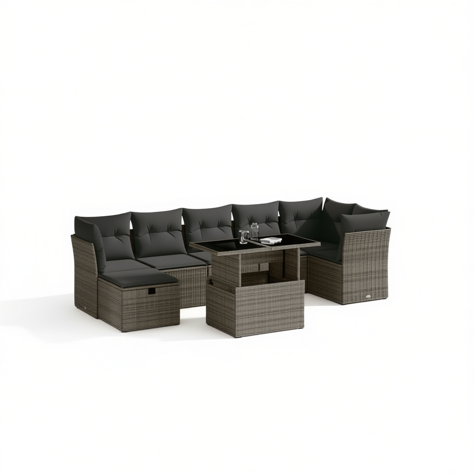 Modular Grey PE Rattan Garden Sofa Set With Storage Outdoor Furniture Contemporary Design