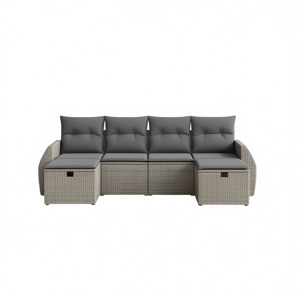 Modular Grey Poly Rattan Garden Sofa Set Steel Frame Outdoor Furniture 4 Seater Contemporary Design