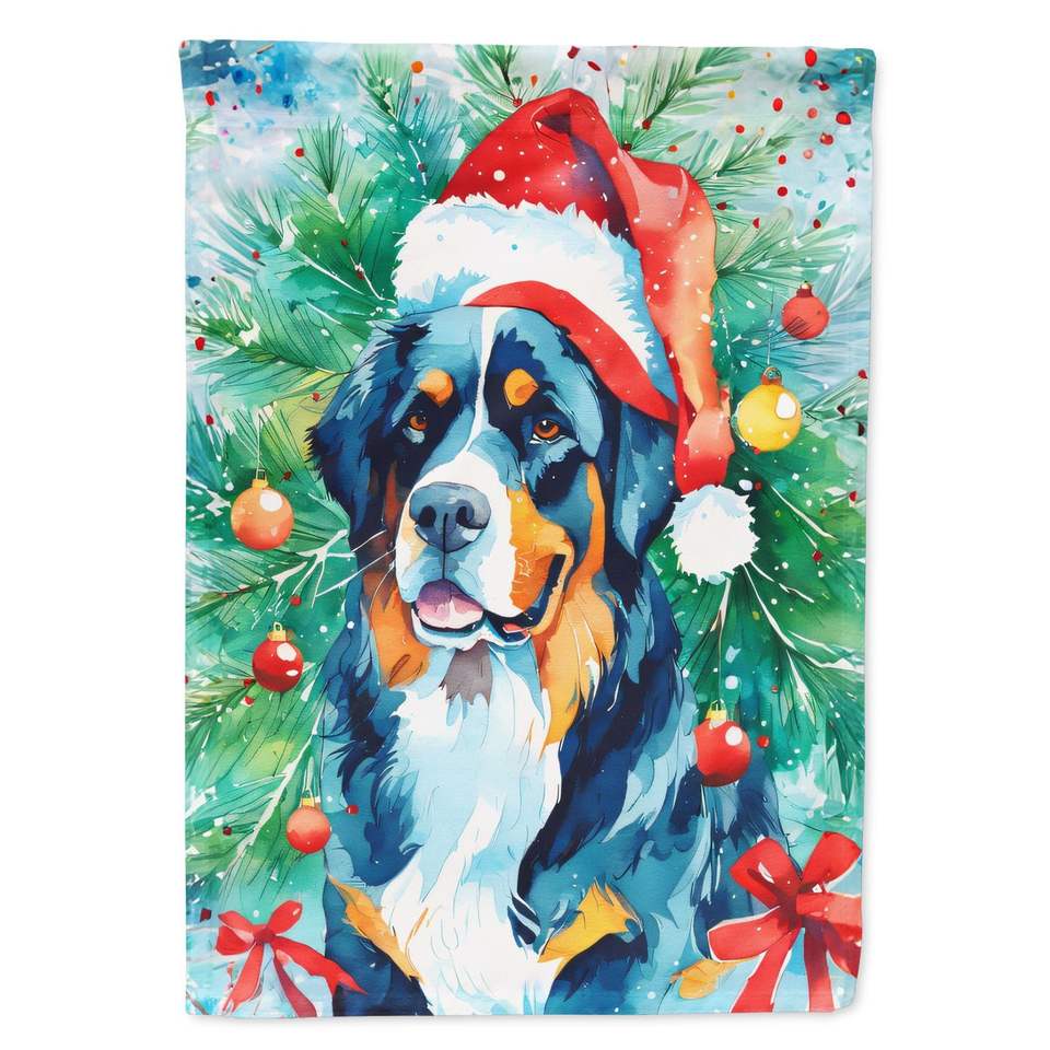 Large Multicolor Polyester Bernese Mountain Dog Christmas House Flag Porch Sleeve Pole Decorative Yard Banner Artwork Wall