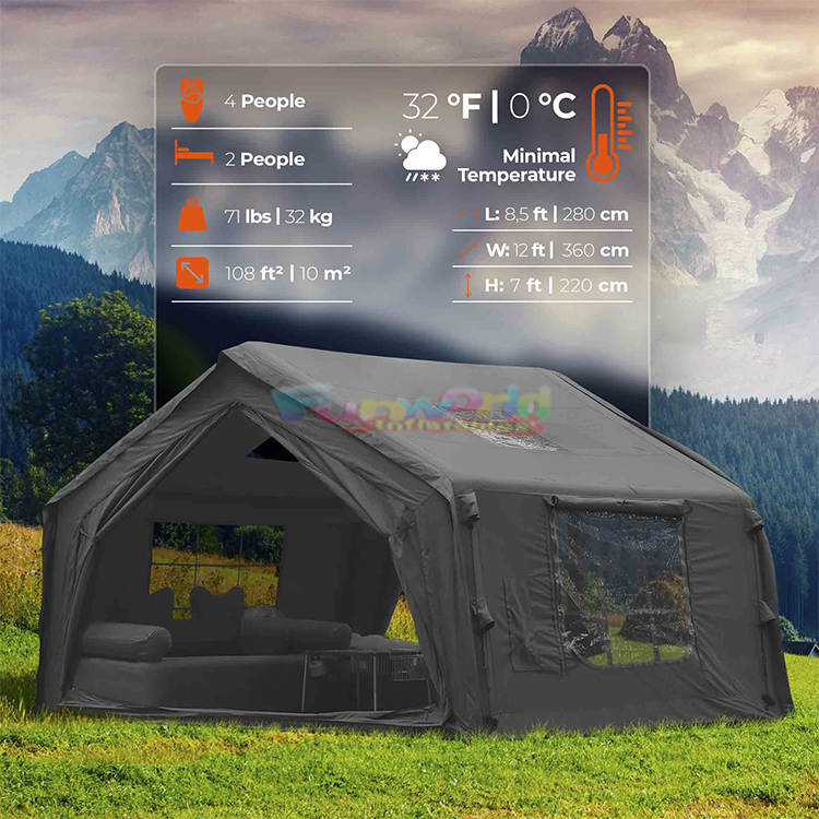 Large Outdoor Family Waterproof Carpa Inflable Para Camping Durable Airtight House Travel Black Air Inflatable Tent For Camping