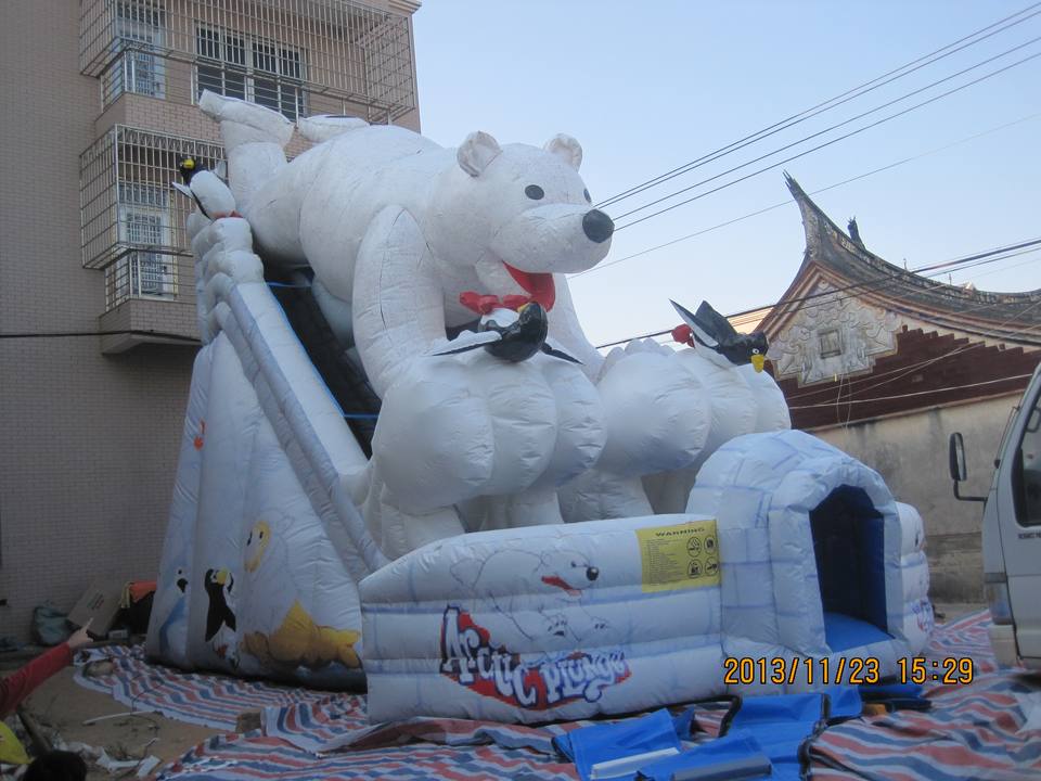 Large Outdoor Inflatable PVC Material White Bear Slide for Kids Amusement Equipment for Sliding Fun