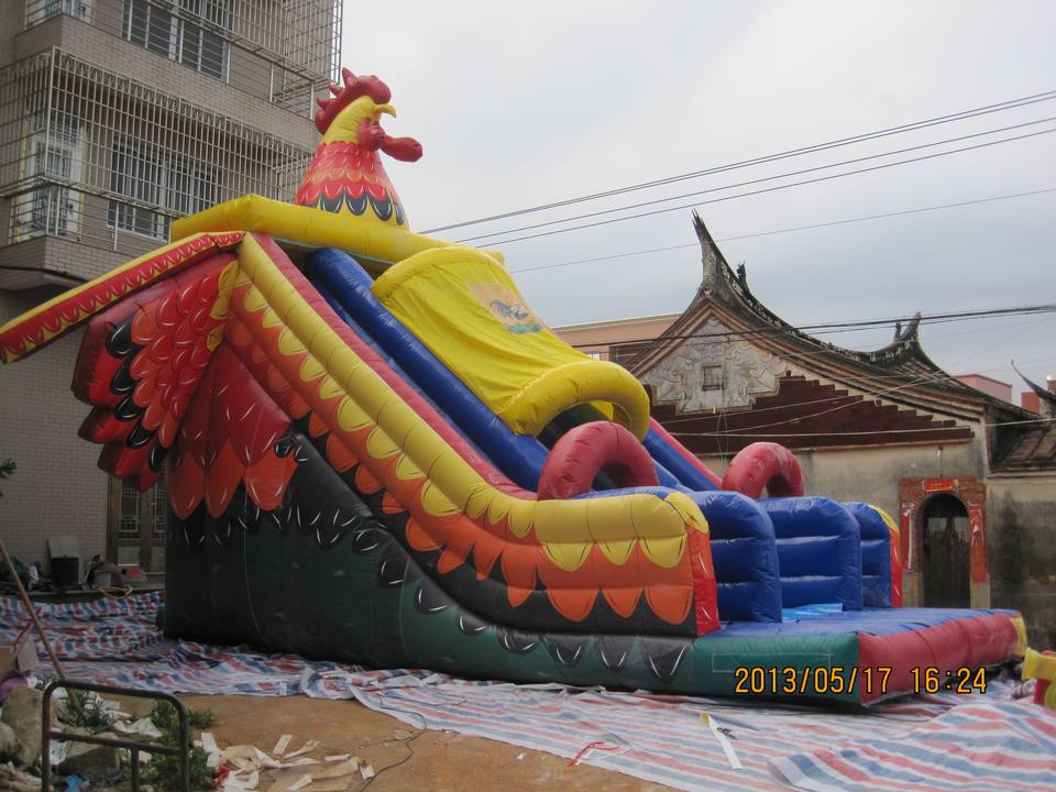 Large Outdoor Inflatable Rooster Slide with PVC Material for Kids Fun Amusement Equipment