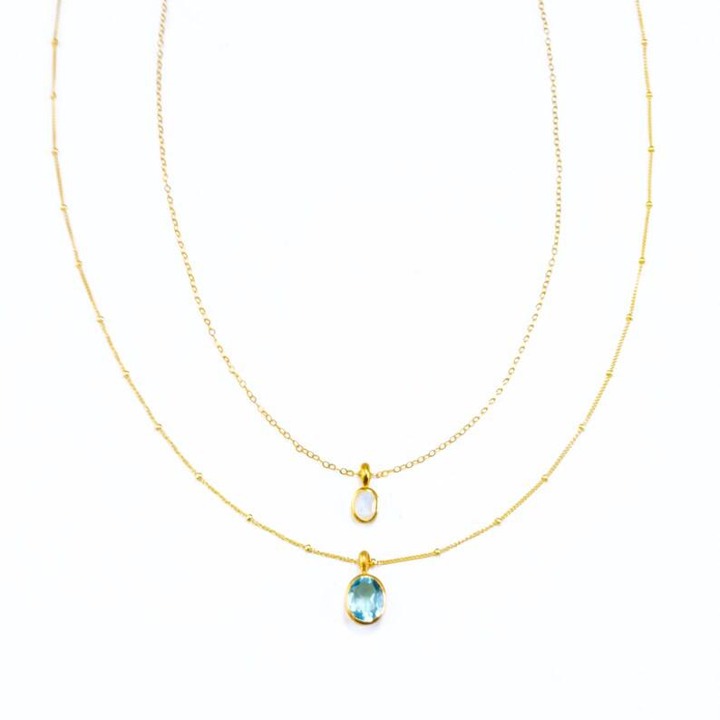 Large Oval Cut Moss Agate Necklace Natural Gemstone Pendant Gold Layered Jewelry Elegant Bezel Set Necklace Gift for Her
