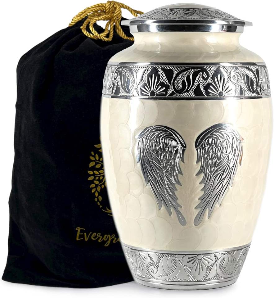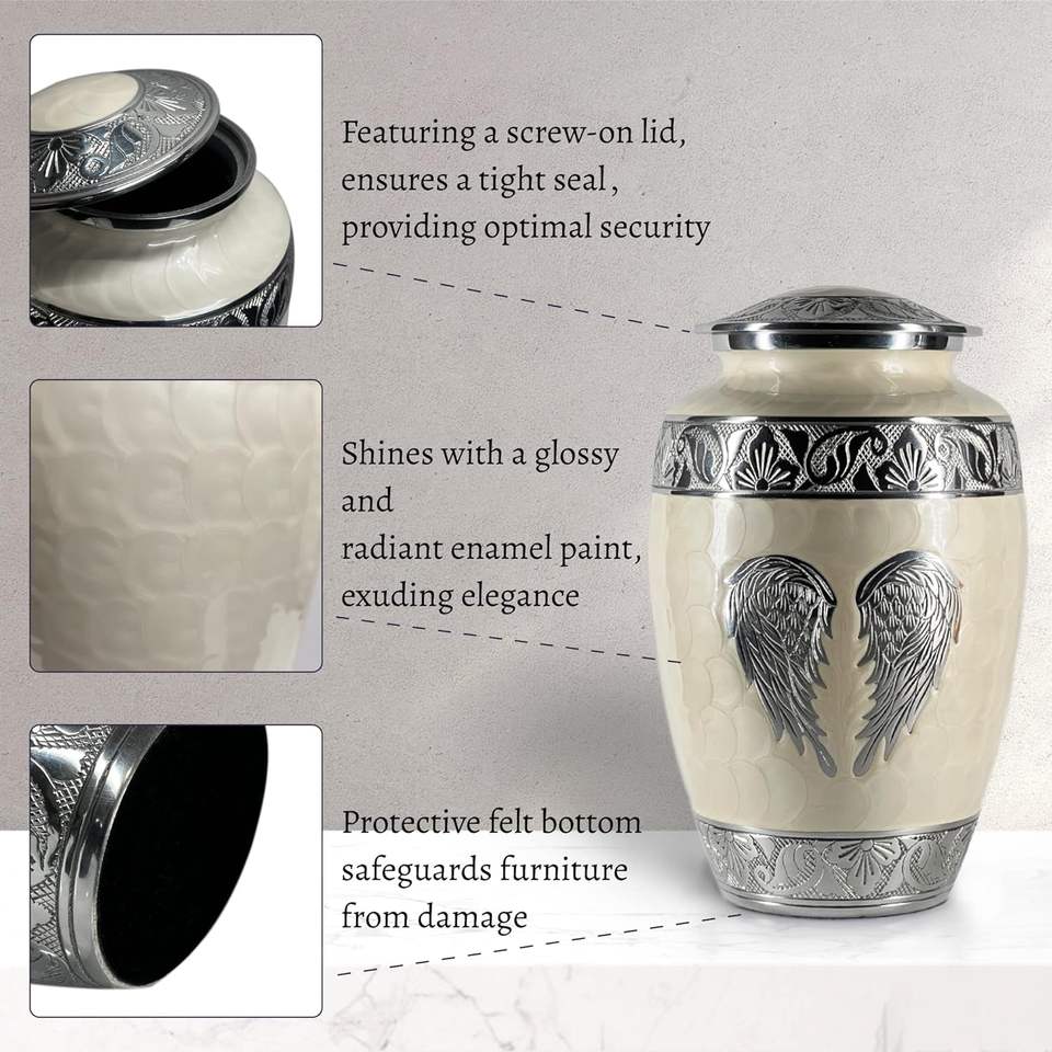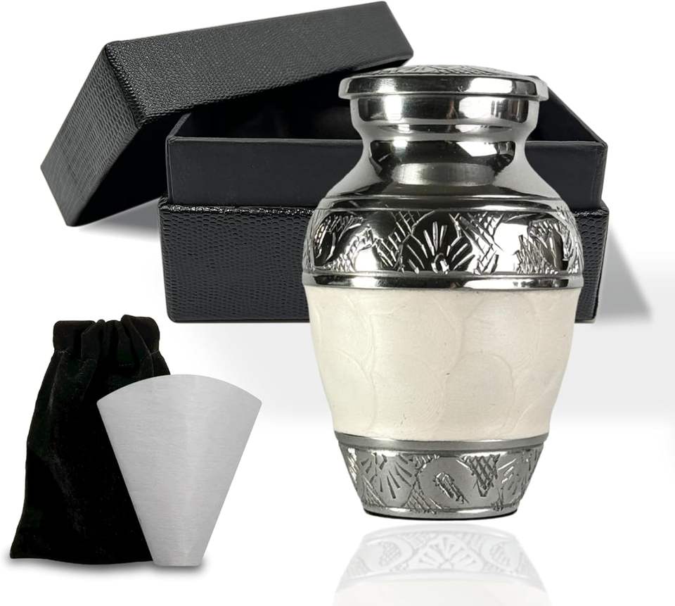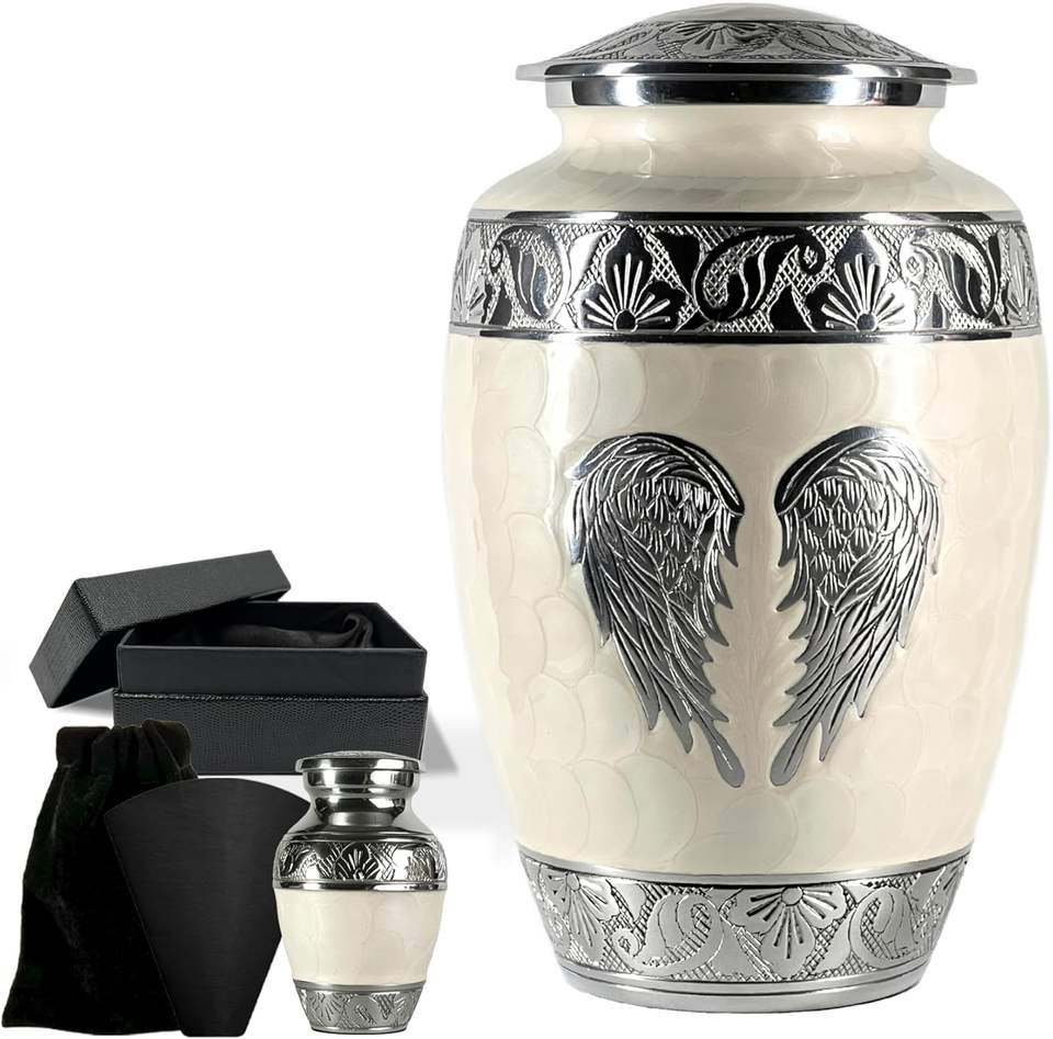 Large Pearl White Cremation Urn with Single Keepsake for Human Ashes Handcarved Decorative Urns for Adult Ashes Women & Men