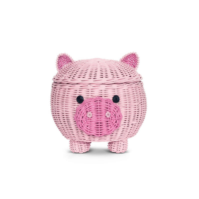 Large Pig Rattan Storage Basket with Lid - Decorative Hand-Woven Shelf Organizer, Cute Handmade Gift, Handcrafted Decoration