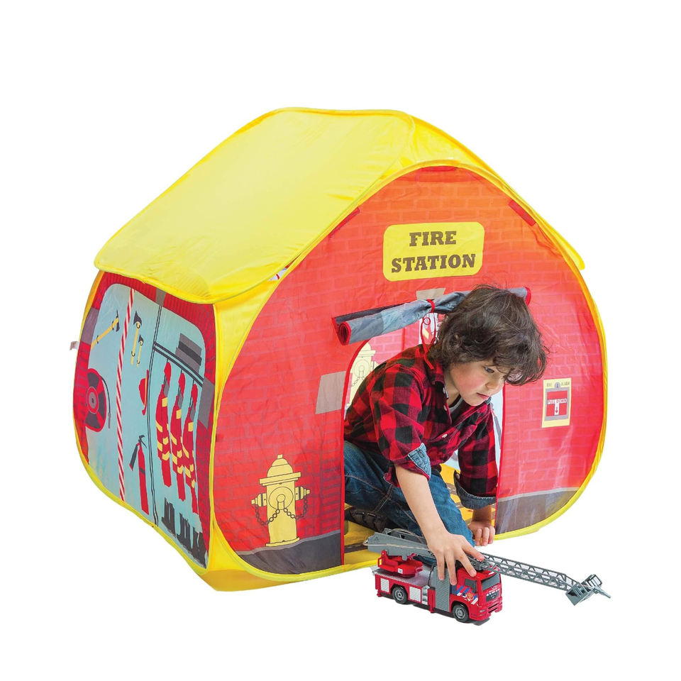 Large Playhouse Tent Indoor Toddler Pop It Up Fire station Tent with Street map Play mat Playhouse