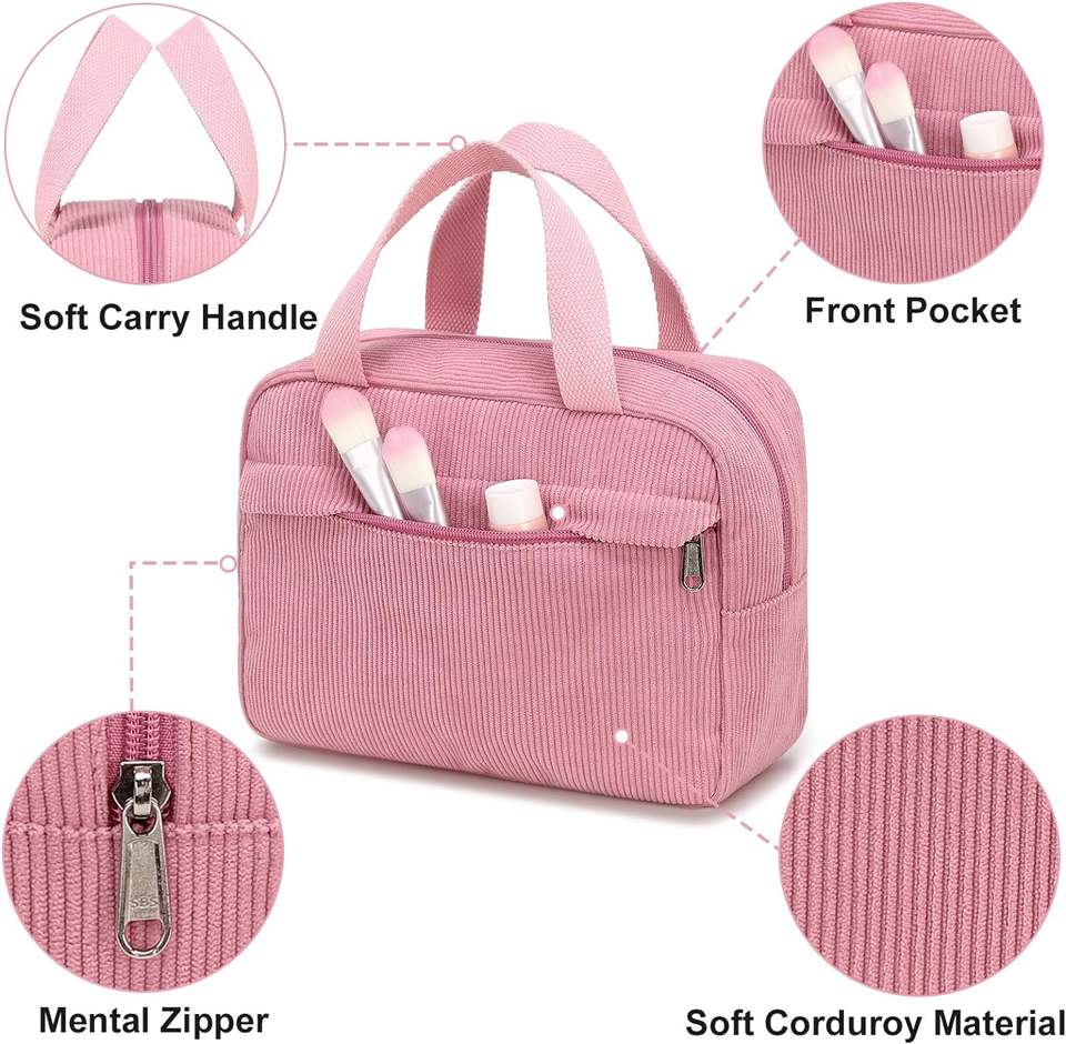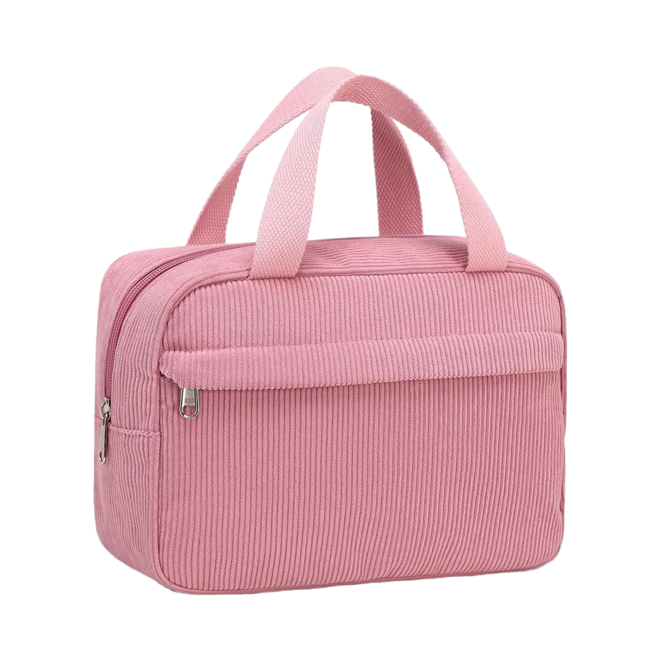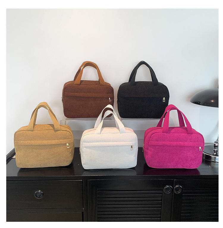 Large Polyester Corduroy Vintage Travel Cosmetic Tote Bag Cute Zipper Pouch Purse Organizer Makeup Durable for Bags Logo