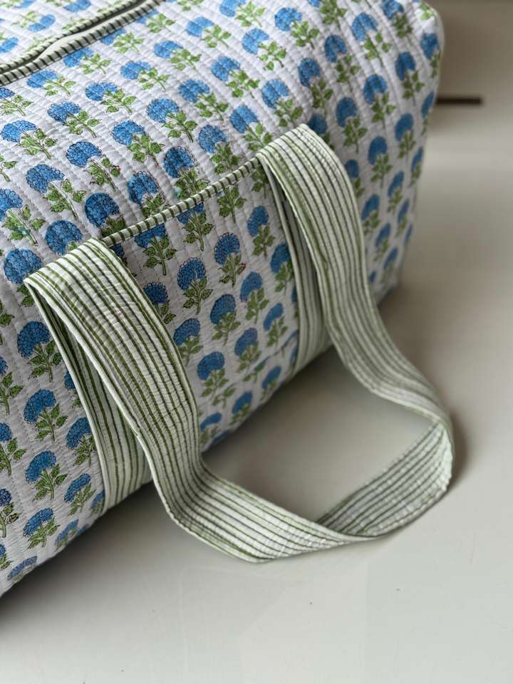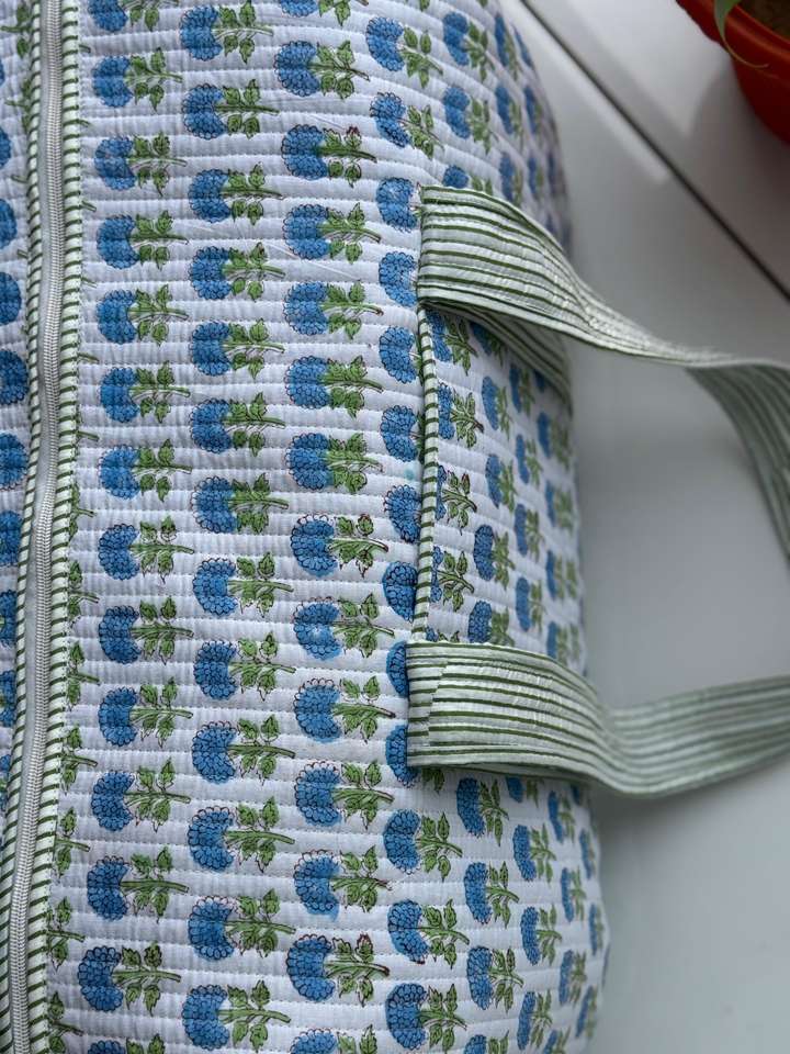 Large Quilted Cotton Duffle Bag Zipper Boho Vintage Block Print Trending Weekender Travel Shoulder Overnight Bag Designer Bag