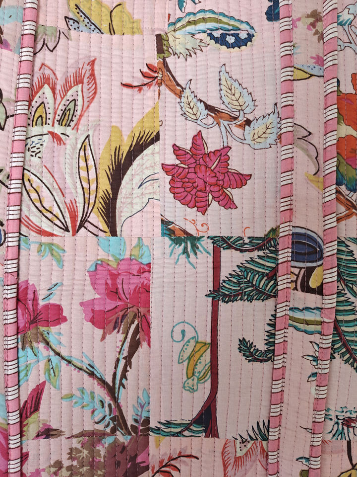 Large Quilted Indian Cotton Tote Bag for Women Light Blue Bohemian Patchwork Style Open Closure for Daily Shopping and Travel