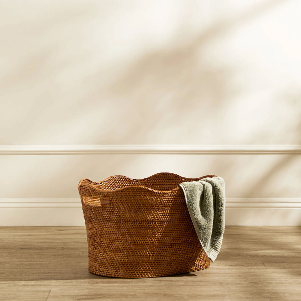 Large Rattan Wavy Basket with Handle Handmade Home Storage Organizer