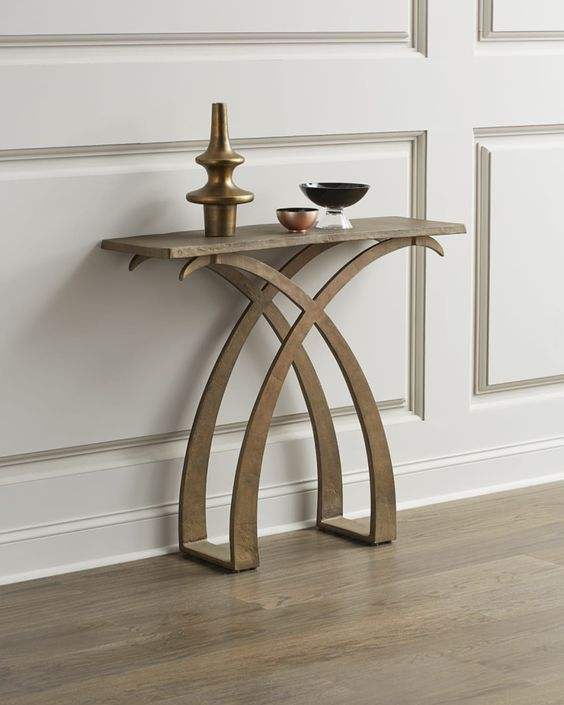 Large Rectangle Decorative Side Modern Tables Wall Side Handmade White Marble Top Brass Gold Base Elegant Furniture Side Tables