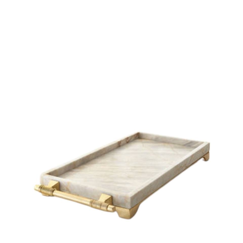 Large Rectangular Marble Food Tray With Metal Handles and Sleek Finished Perfect for Hotel and Restaurant Food Serving Usage