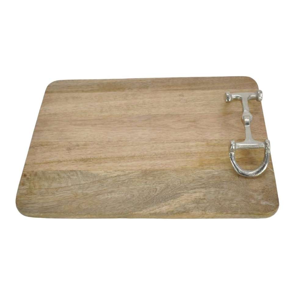 Large Rectangular Shape Thick Wooden Chopping Board With Gold Horse Bit Handle Multifunctional Style Kitchen Accessories