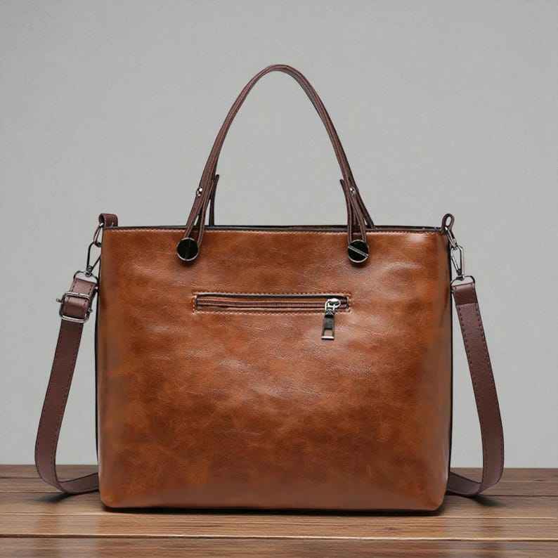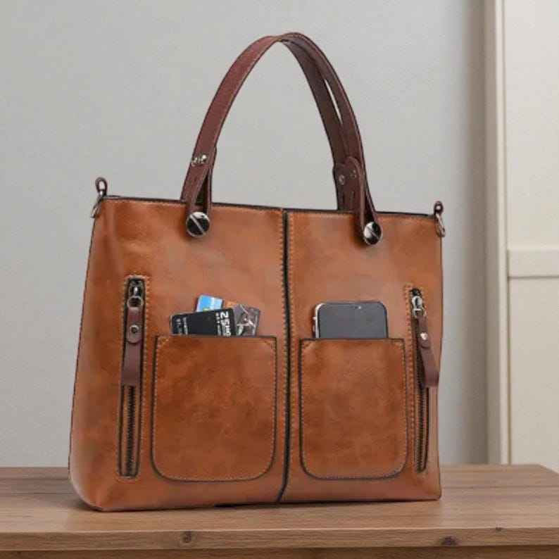 Large Retro Genuine Leather Casual Tote Bag with Zipper Closure Waterproof Portable Women's Shoulder & Crossbody Handbag