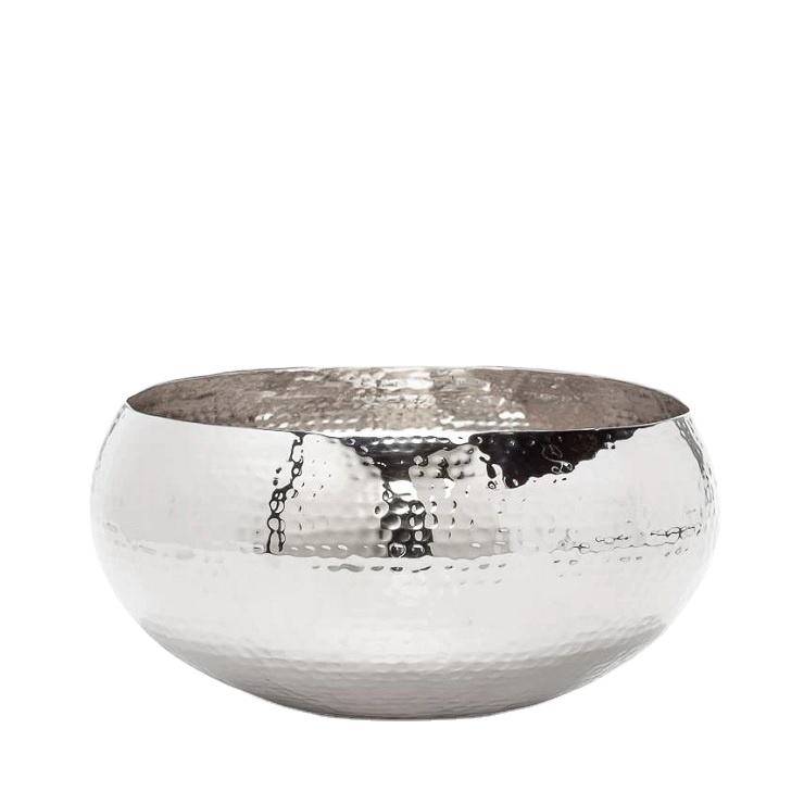 Large Round Decorative Steel Bowl with Hammered Design and Mirror Finished for Home Table Decor Serving Bowl