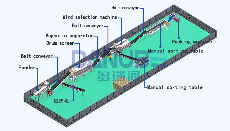 Trommel screen, Air separation, Vibrating screen, Metal magnetic separator, Shredder, Waste baling machine, Conveying machine