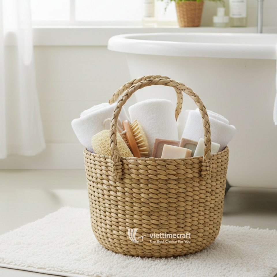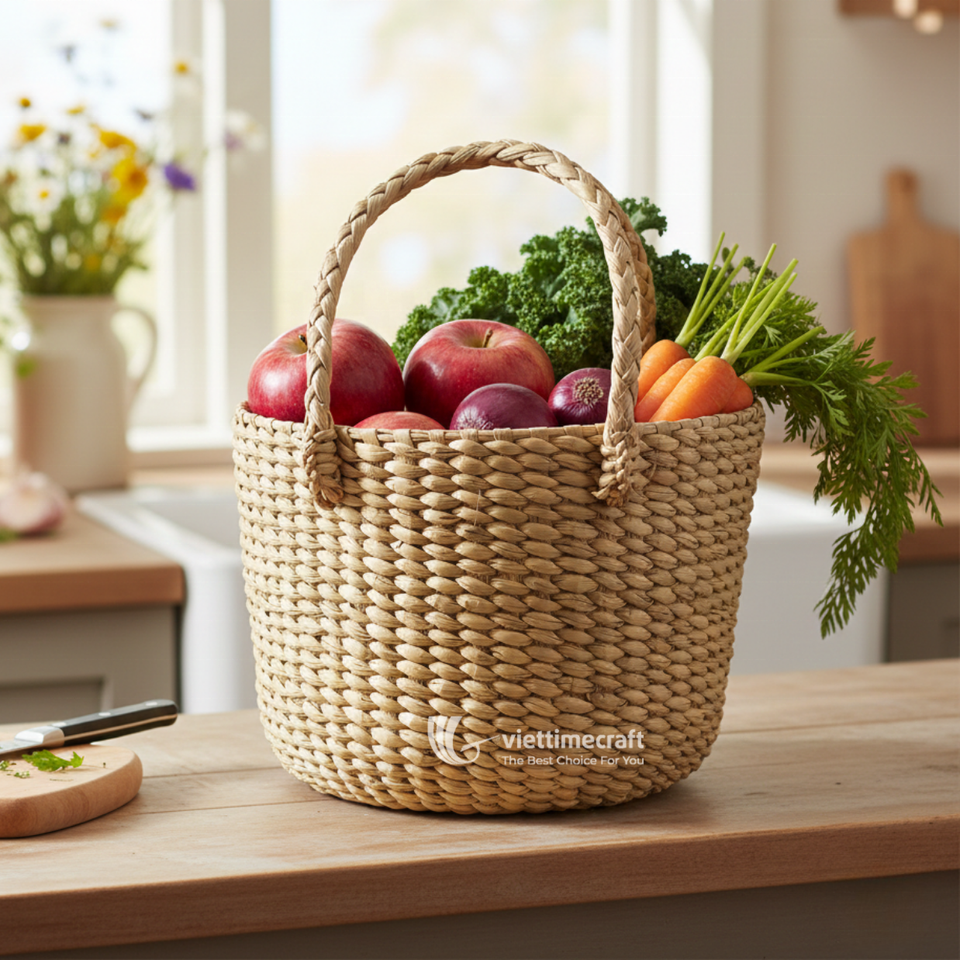 Large Seagrass Wicker Storage Basket with Braided Handles