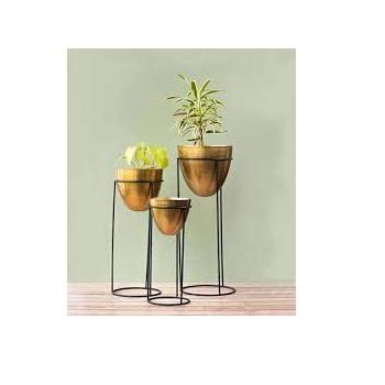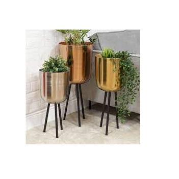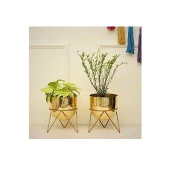 Large Selling Gold Polished Home Garden Metal Flower Pot with Stand Custom Logo Metal Flower Planter Planter