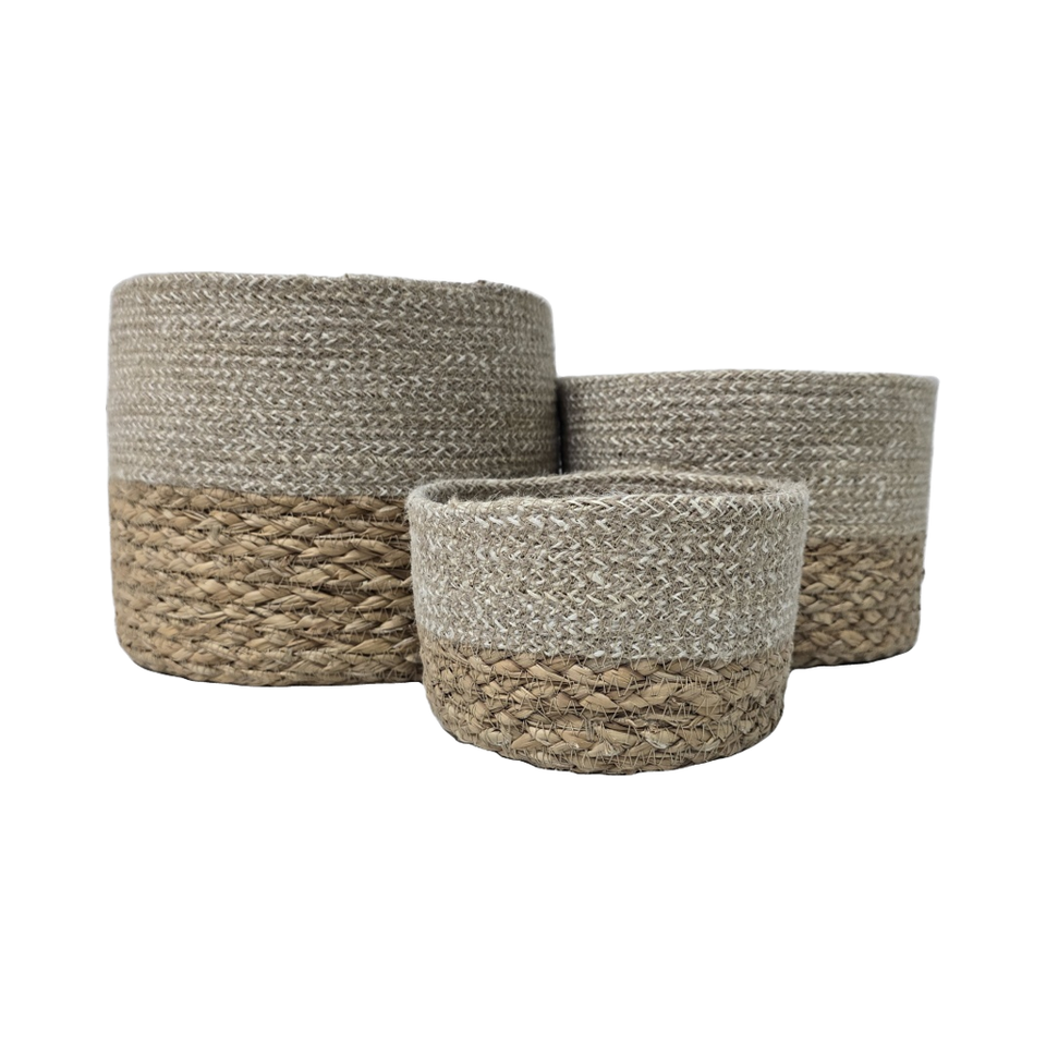 3pcs Home Organization Storage Basket Set Rattan and Woven Baskets with Handles Metal Wire Bamboo Material for Household Use