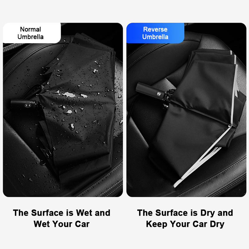 Large Size 27inches 10 Ribs Safety Invert Reversed Folding Umbrellas Automatic Business Umbrella with Reflective Border