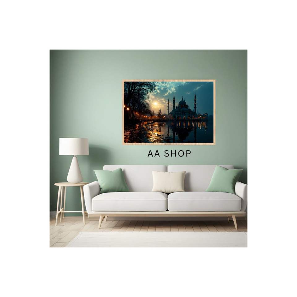 Large Size 70x50cm MDF Table Colorful Faded Quality Printing Frame Mosque Scenery Wall Art 133