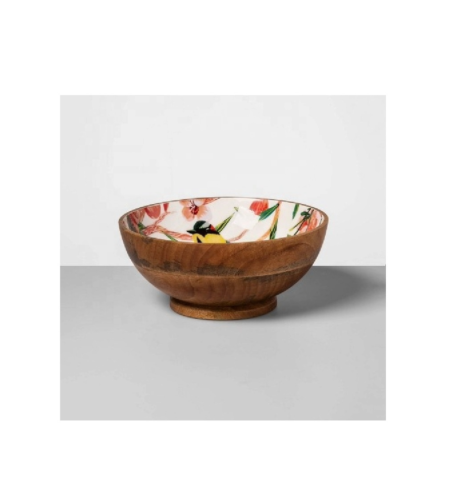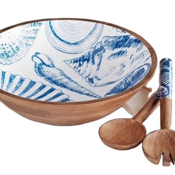 Large Size Deep Bowl Enamel Print Design Wood Serving Plate for Wedding Restaurant Home Food Supply Bowl Platter For Giveaways