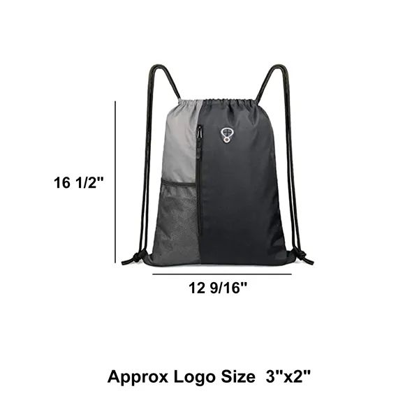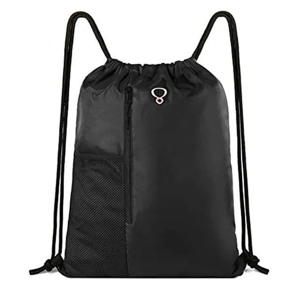Large Size Drawstring Backpack with Two Zipper Pockets Water Bottle Mesh Pockets Sports Gym Bag for Women Men Lining Polyester