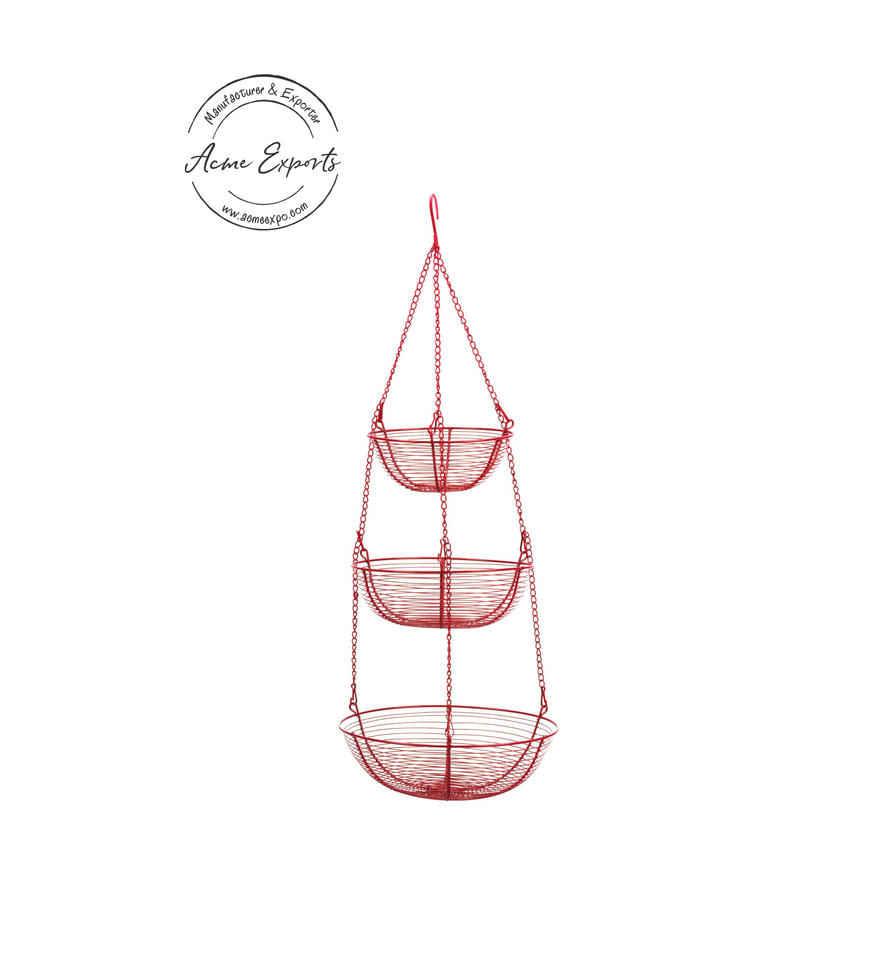 Customized 3-Tier Iron Wire Fruit Basket with Large Hanging Hook Black Eco-Friendly Metal Bowls Designed for Parties