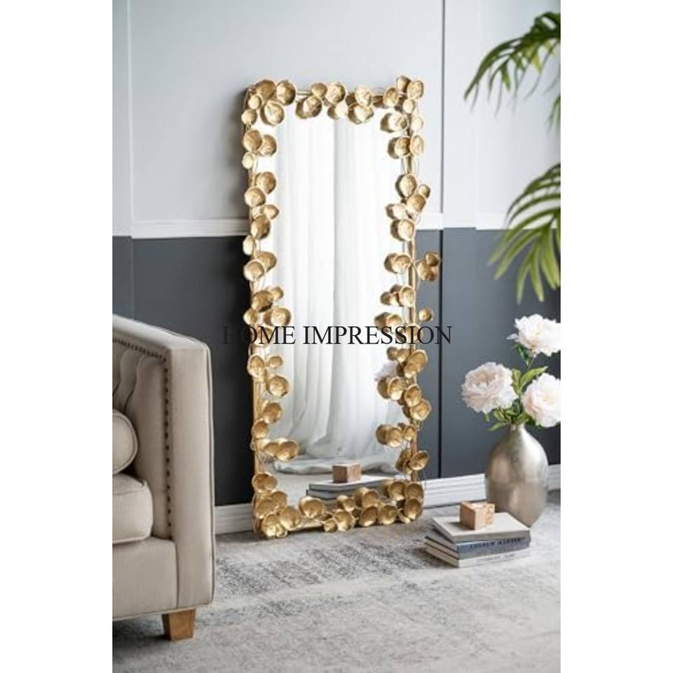 Large Size High Standard Quality Gold Plated Frame Unique Designer Floor Mirror for Home and Hotel Bedroom Decoration From India