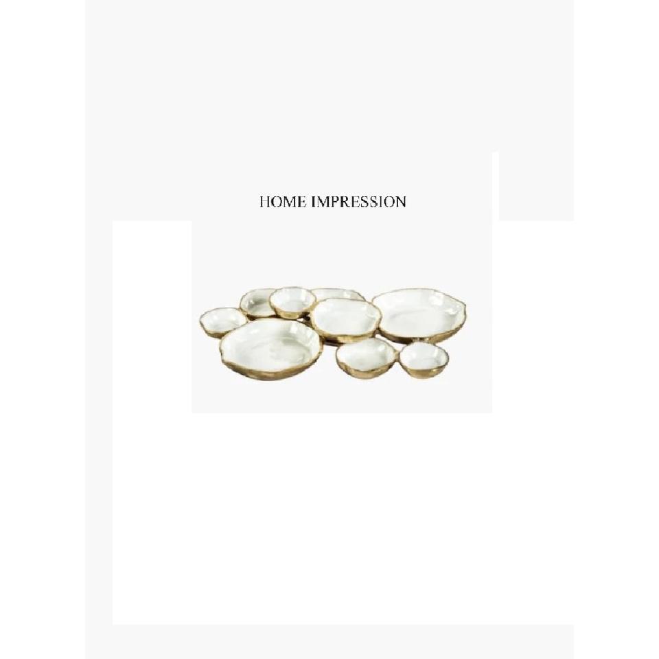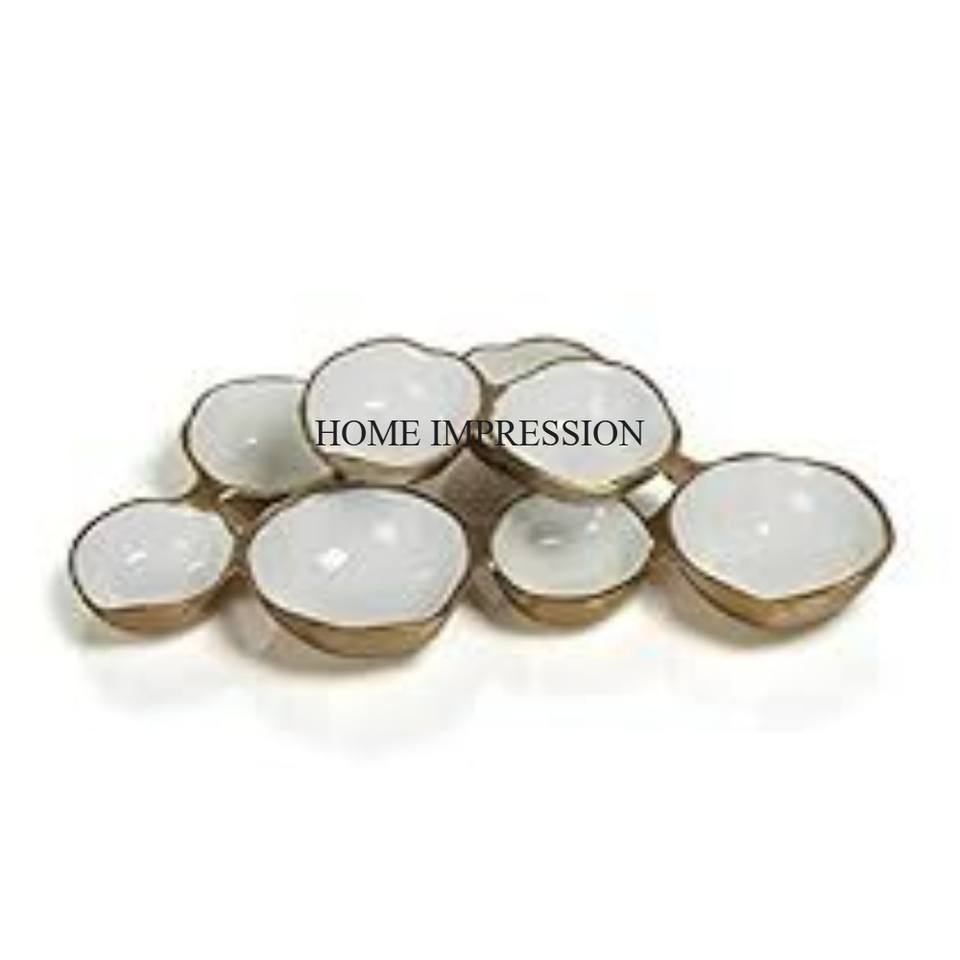 Large Size Hotel & Restaurants Table Centerpiece and Decoration Luxurious Quality Aluminum Casted Gold Plated & White Color Bowl