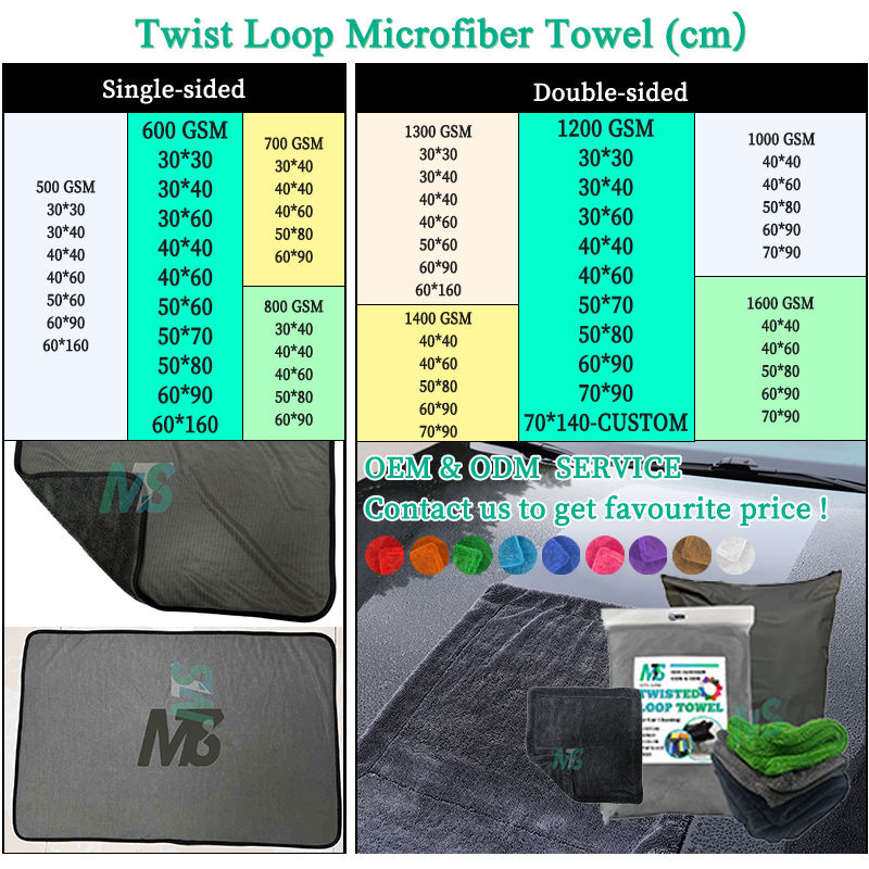 Large Size Microfibre Detailing Auto Micro Fiber Cloths Cleaning Twisted Loop Drying Towels Car Detailing Towel