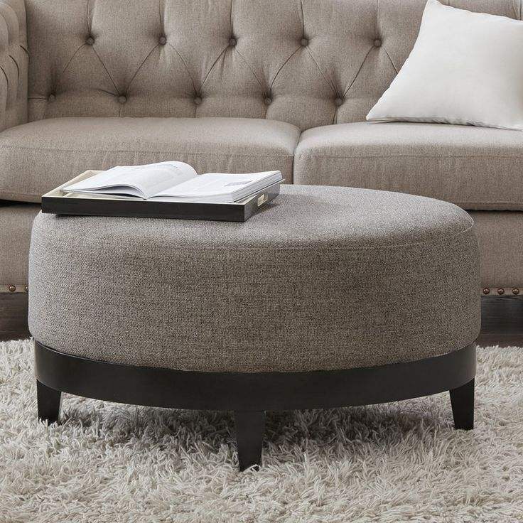 Large Size Ottoman Stool with Wooden Legs High Quality Grey Fabric Ottoman for Home Hotel and Farmhouse Decor Use Premium Look