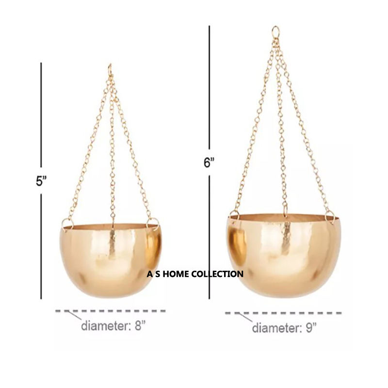 Large Size Set of 2 Metal Hammered Decorative Shiny Polish Home and Garden Flower Pots and Planters