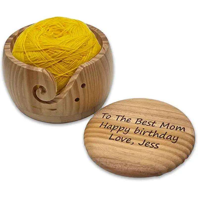 Large Size Wood Yarn Holder Knitting Hooks Crochet Accessories Knitting Storage Handmade Heavy Wooden Yarn Bowl With Hole