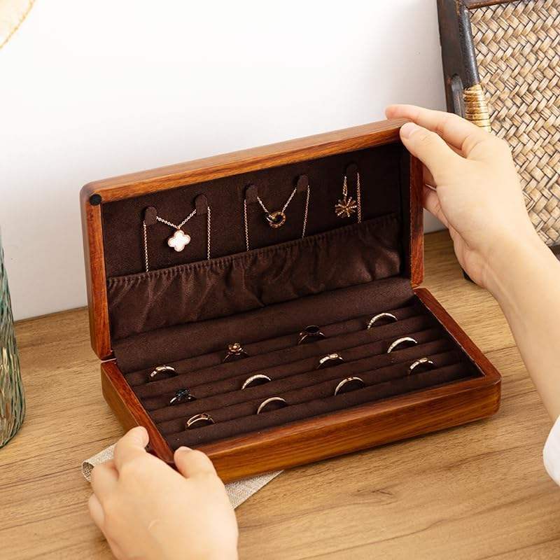 Large Solid Wood Jewelry Box for Rings Cufflinks Earrings Portable Travel Storage Vintage Gift for Women for Any Occasion