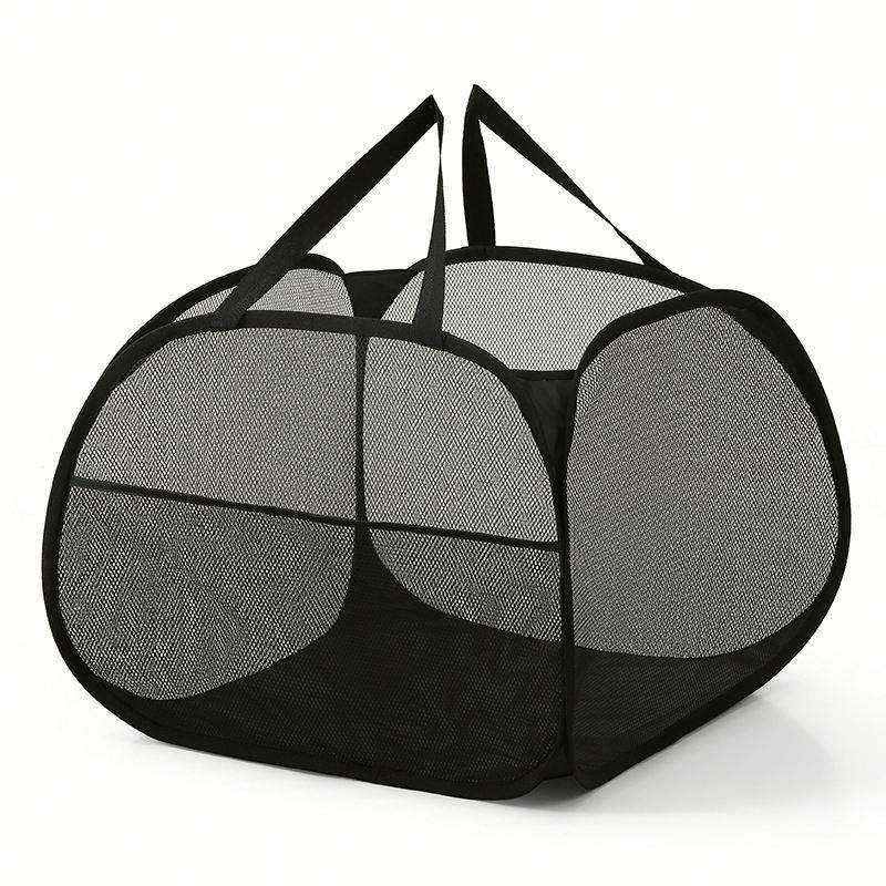 Large Square Mesh Laundry Bag Pop up Square Laundry Basket Hamper with Side Pocket
