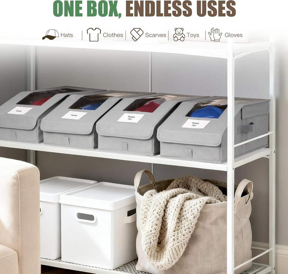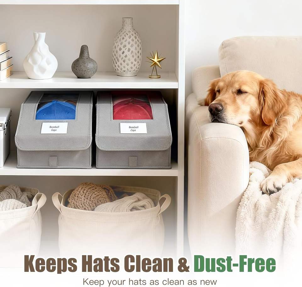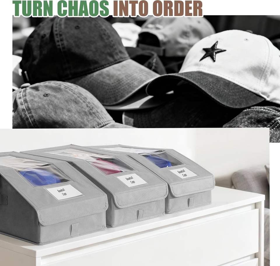 Large Stackable Hat Organizer for Baseball Caps Clear Window Holds 28 Caps Foldable Hat Storage Box for Closet Shelf Storage