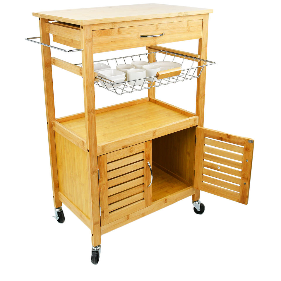 Cabinet Bamboo Kitchen Trolley with Stainless Steel Worktop